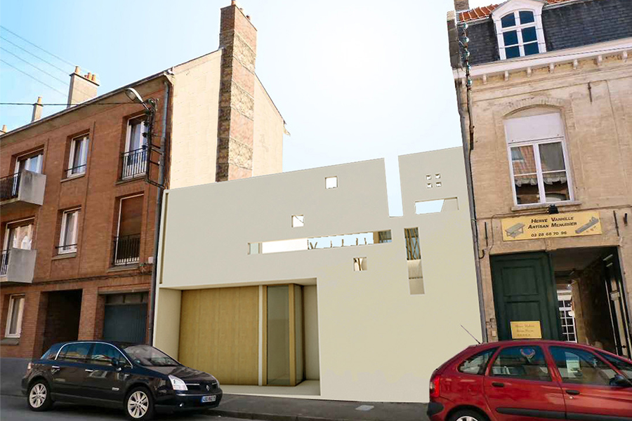 Ces fentes et ces lucarnes rappellent la situation de la maison dans le tissu dense qui est le sien.