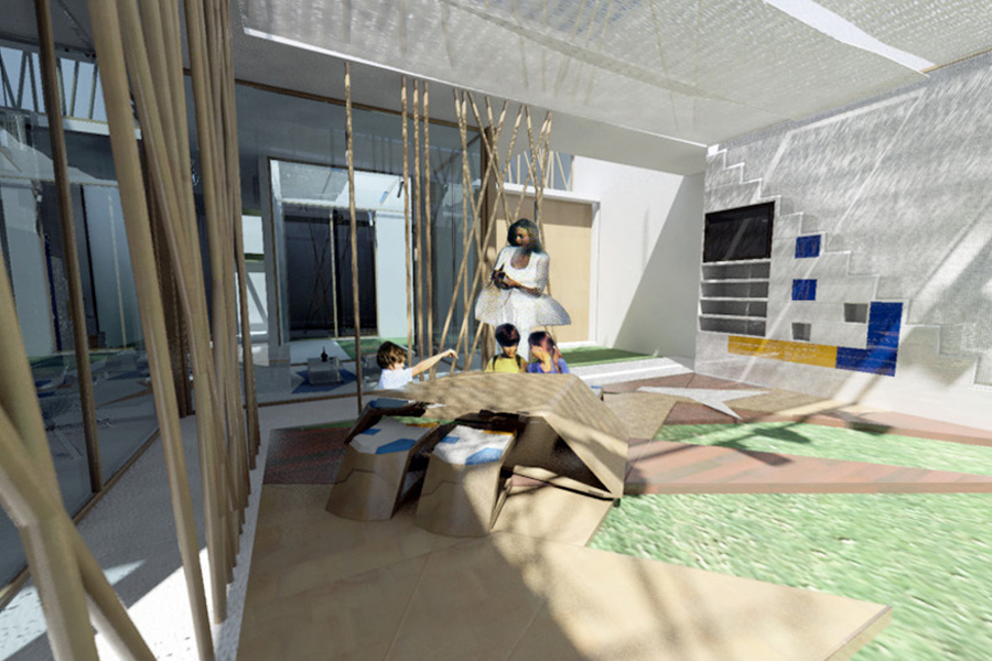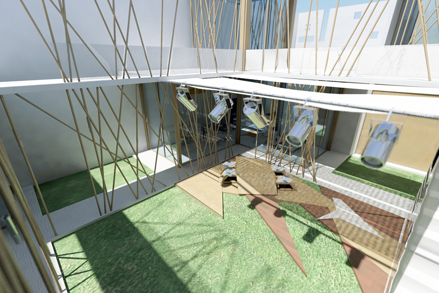 Le patio joue ici le rôle d’espace de vie et de régulateur climatique. Il permet à la fois de créer des lieux de vie d’exception baignés de lumière, et de proposer des espaces tampons ombragés qui participent à favoriser un meilleur