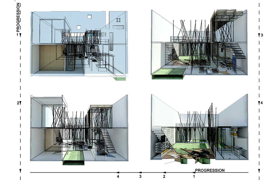 La maison est ici interprétée comme un espace unitaire et protecteur, ayant comme qualité principale de regrouper autour d’une même centralité ses occupants.