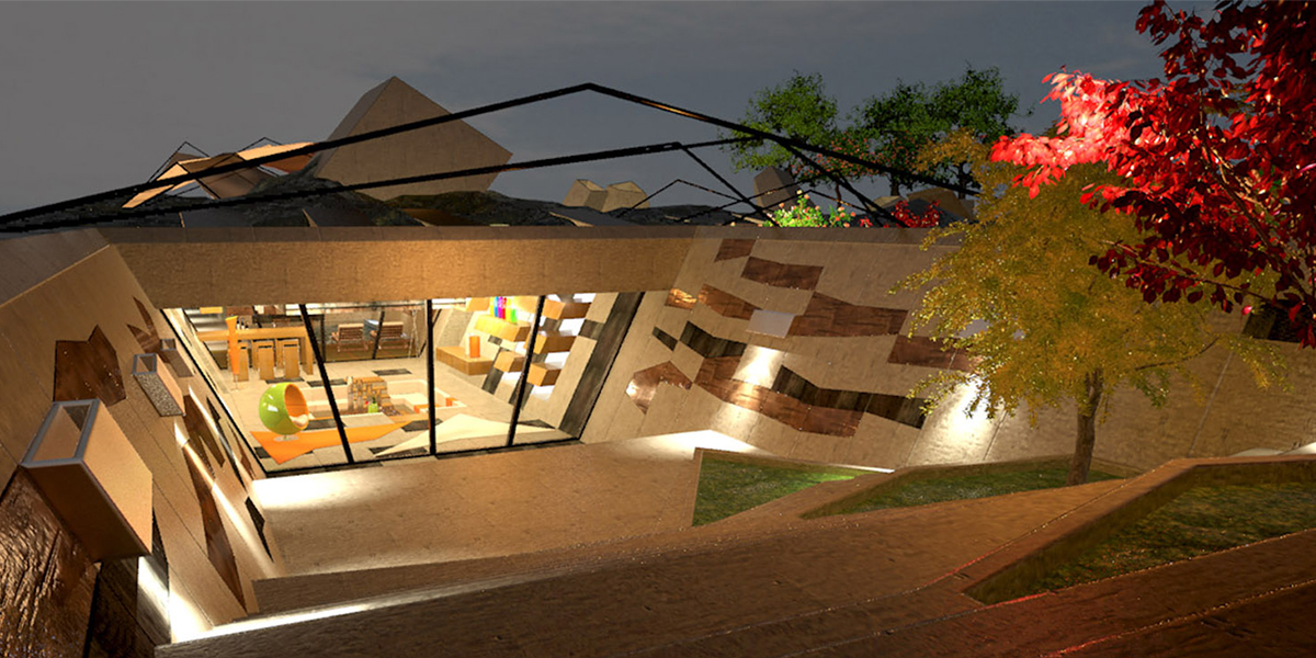 Celle de l’intégration dans le paysage naturel et celle de l’habitat enterré. La maison interprète le concept d’intégration dans le paysage en fusionnant avec la terre et avec le site naturel qui la reçoit.